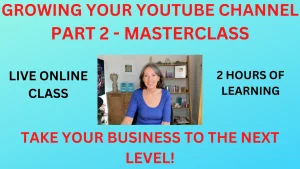 This class continues on from ‘HOW TO DEVELOP AND GROW A SUCCESSFUL YOUTUBE CHANNEL’ live webinar class on 11 November 2023 and goes into more depth and detail. This, Part 2, YouTube Masterclass, is a 2 hour class following on from Part 1, with more depth and detail, and will go into even more information. It is suitable for anyone who has some knowledge of YouTube and how it can grow your business and income, and who wants to find out even more.